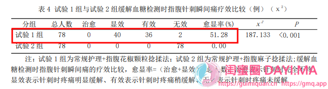 来源:《指腹花椒颗粒捻揉法对糖尿病患者针刺采血疼痛的干预研究》