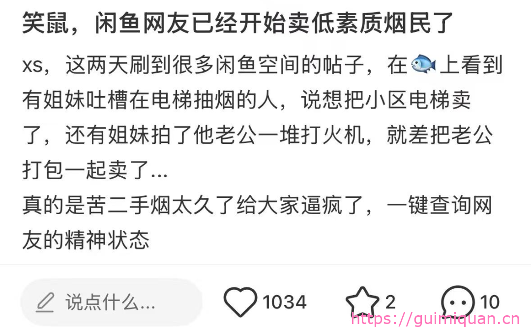 在此之前,欢迎各位宝宝发挥聪明才智,在闲鱼大胆晒出自己被二手烟“玷污”到掉价的故事(人、物形式不限),让烟人明白——