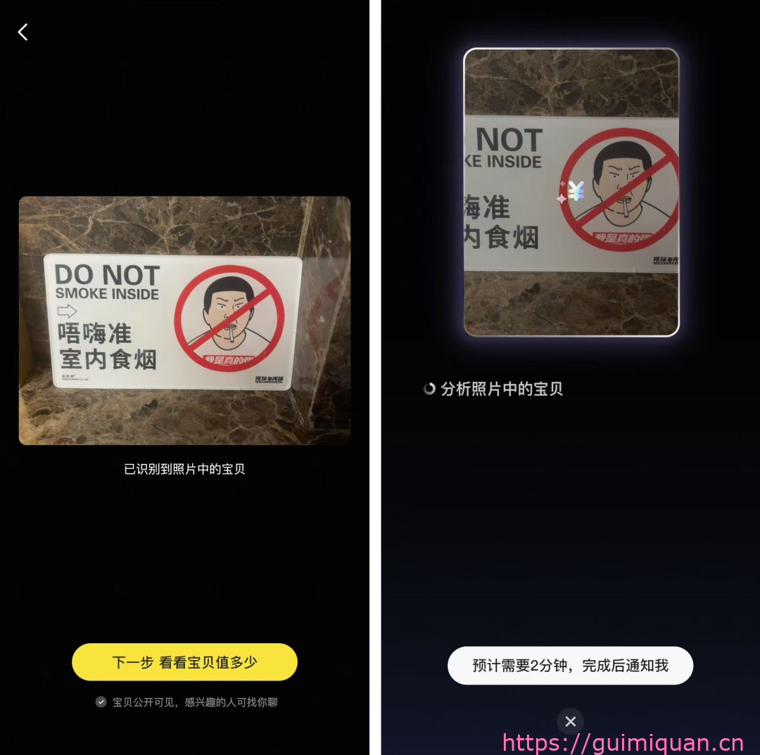 1.打开闲鱼APP,点击页面下方【卖闲置】-【闲鱼相机】按钮,即可拍物; 2.获取用户授权后,照片将发布至用户闲鱼空间; 3.AI识别出宝贝,可以帮你自动估价和撰写描述(可手动更改)。 要注意,这时候你的宝贝不是意味着上架售卖,只是相当于在橱窗“晒”的状态。看看烟人烟物“身价”多少,接下来怎么玩梗搞抽象靠你了!
